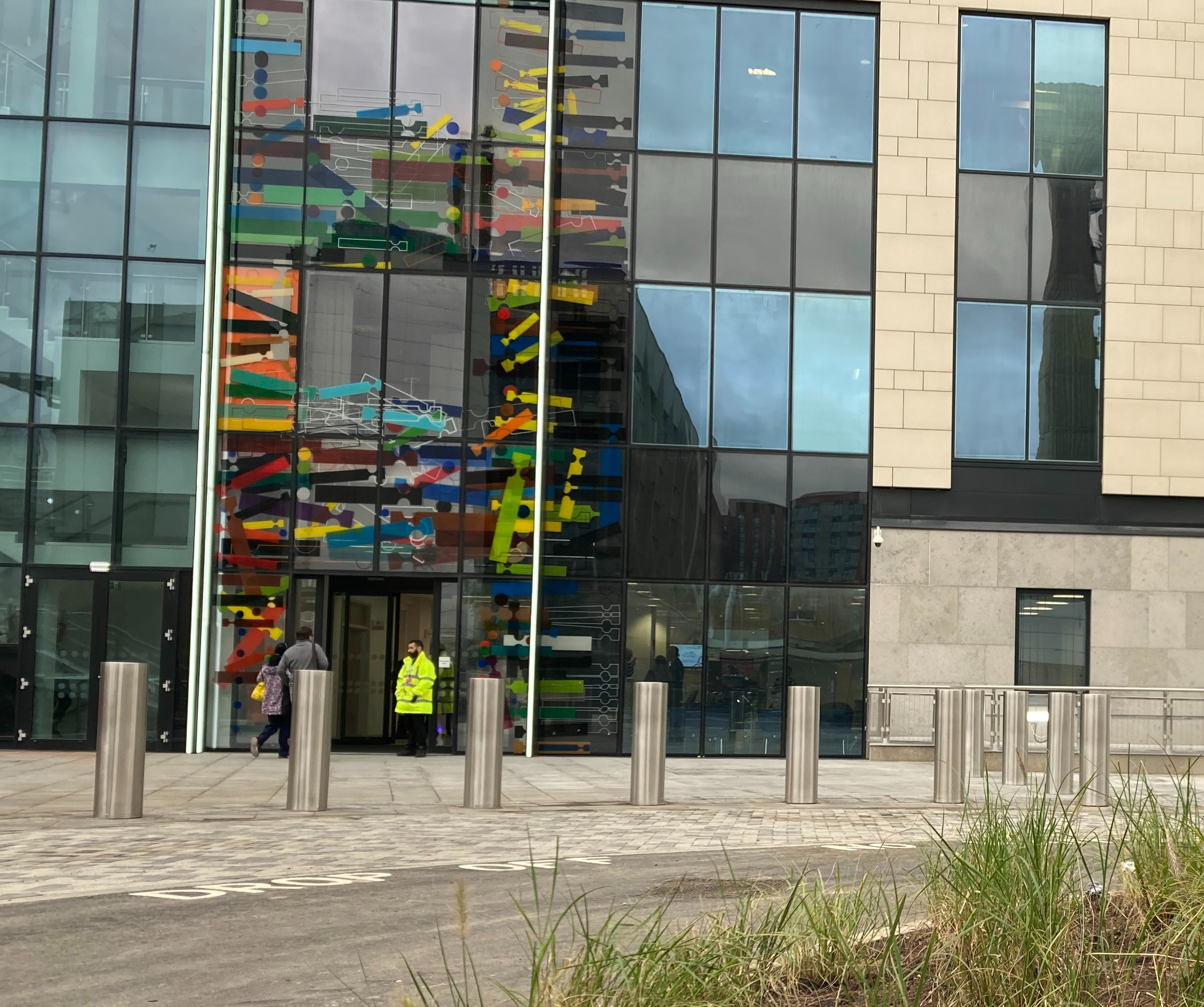 In addition to reflective banding on the static bollards to incorporate the sites corporate brand image, Frontier Pitts can also provide corporate engraving on the stainless steel bollard sleeve. |
