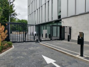 The popular Bi-folding Speed Gate is a fast acting security gate which is ideal for sites where there is a limited area for the gate to open and close.